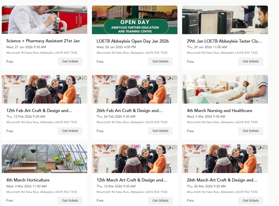 Attention Guidance Counsellors and Schools – If you would like to arrange a group visit please email us on abbeyleix@loetb.ie.